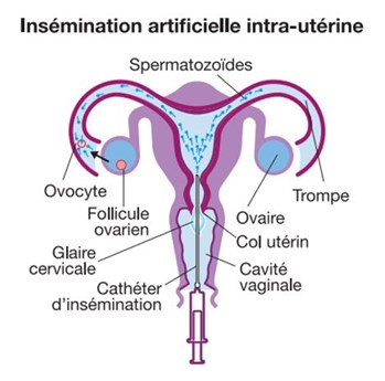 L’insémination intra-utérine (ou insémination artificielle) avec sperme de donneur consiste à reproduire un cycle naturel à l’aide d’injections hormonales afin de permettre le développement puis l’ovulation d’un follicule (parfois deux), et de synchroniser cette dernière avec le dépôt de spermatozoïdes de donneur dans la cavité utérine, qui remonteront ensuite dans les trompes jusqu’à l’ovule.